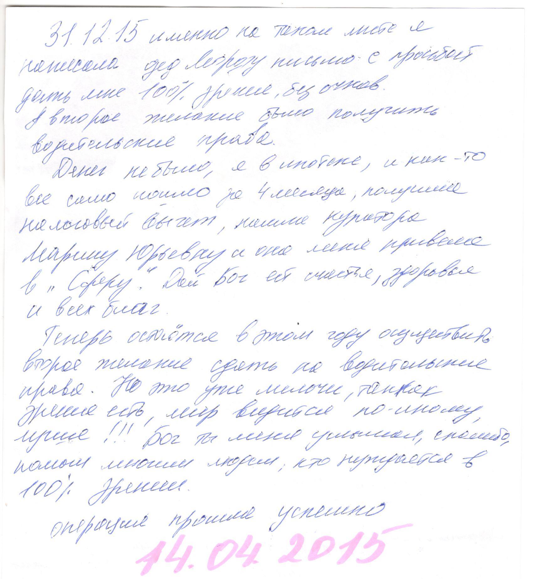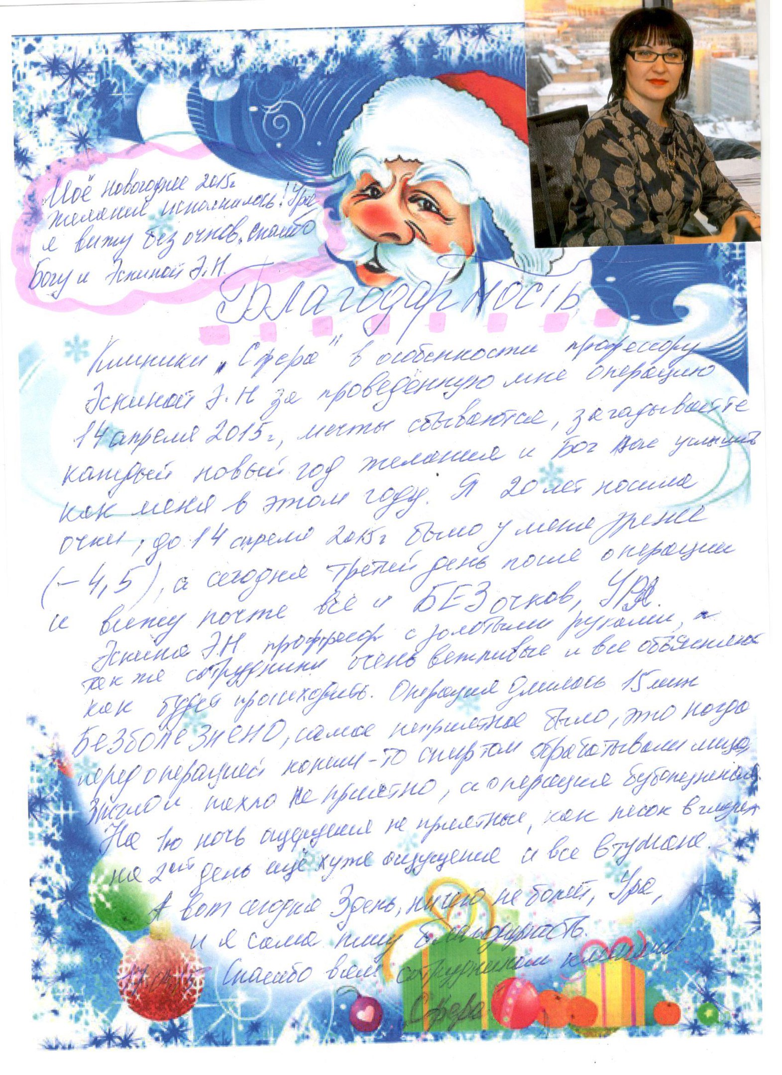 Эмоциональный рукописный отзыв о лазерной коррекции зрения